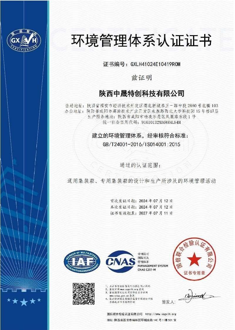 环境管理体系认证证书