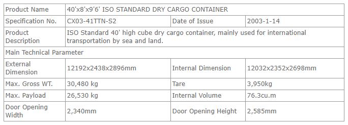 40'x8'x9'6'国际集装箱