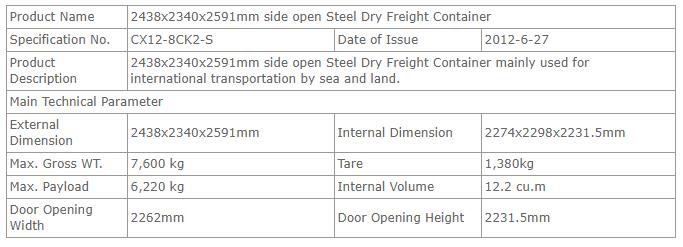 8’侧开门特种干货集装箱