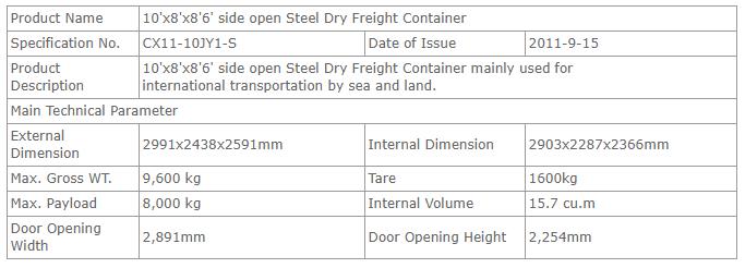 10’侧开门特种干货集装箱