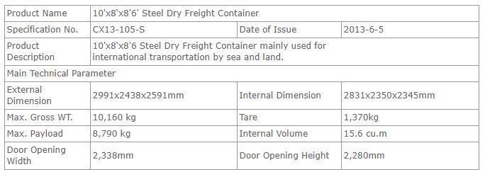 10’钢顶板特种干货集装箱