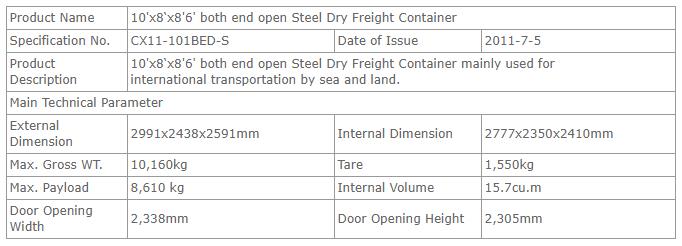 10’两端开门钢底板特种干货集装箱