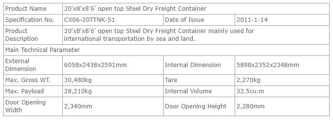 20’硬开顶特种干货集装箱