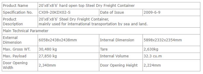20’硬开顶特种干货集装箱