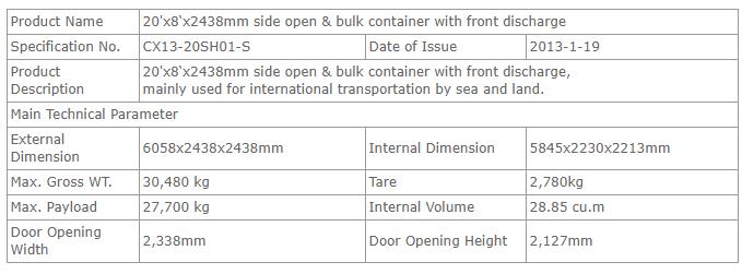 20’侧开门特种散货集装箱