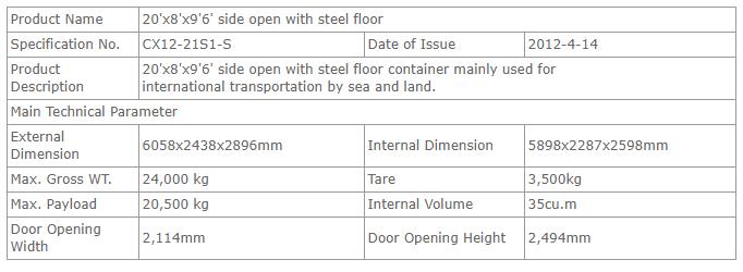 20’HC一侧开全钢底板特种干货集装箱
